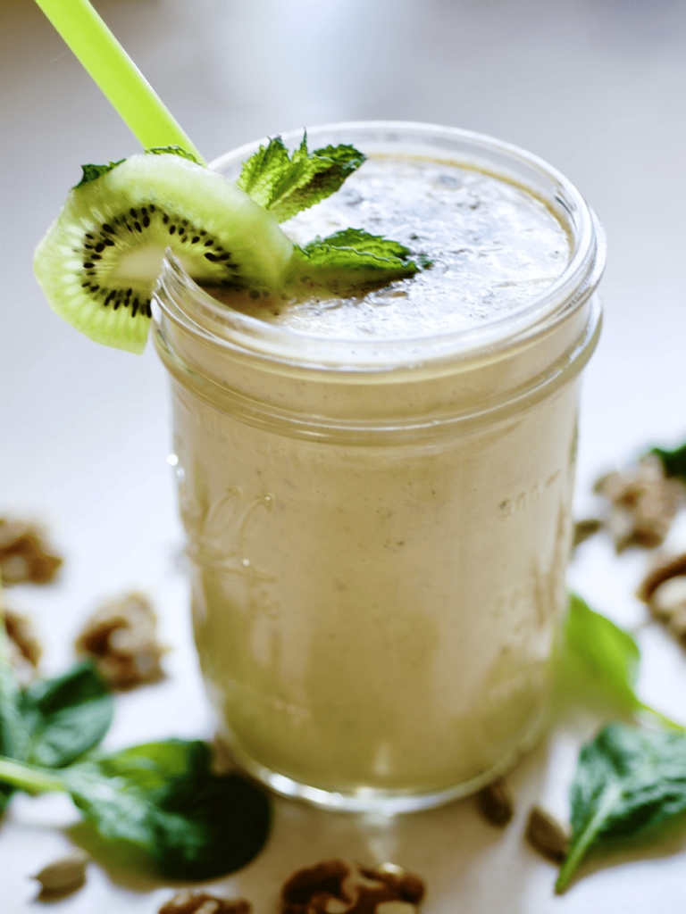 ビタミンC豊富なキウイと、植物性たんぱく質が含まれた豆乳を組み合わせることで、健康にも美容にも嬉しいスムージーに仕上がりました。
